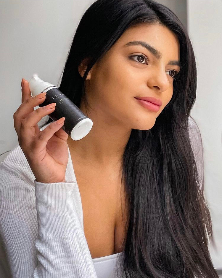 Key ingredients: olive oil, vitamin E, shea butter, squalene, elderberry extract, argan oil, algae extract, goji berry extract, cotton thistle extract, pomegranate extract, low molecular weight hyaluronic acid