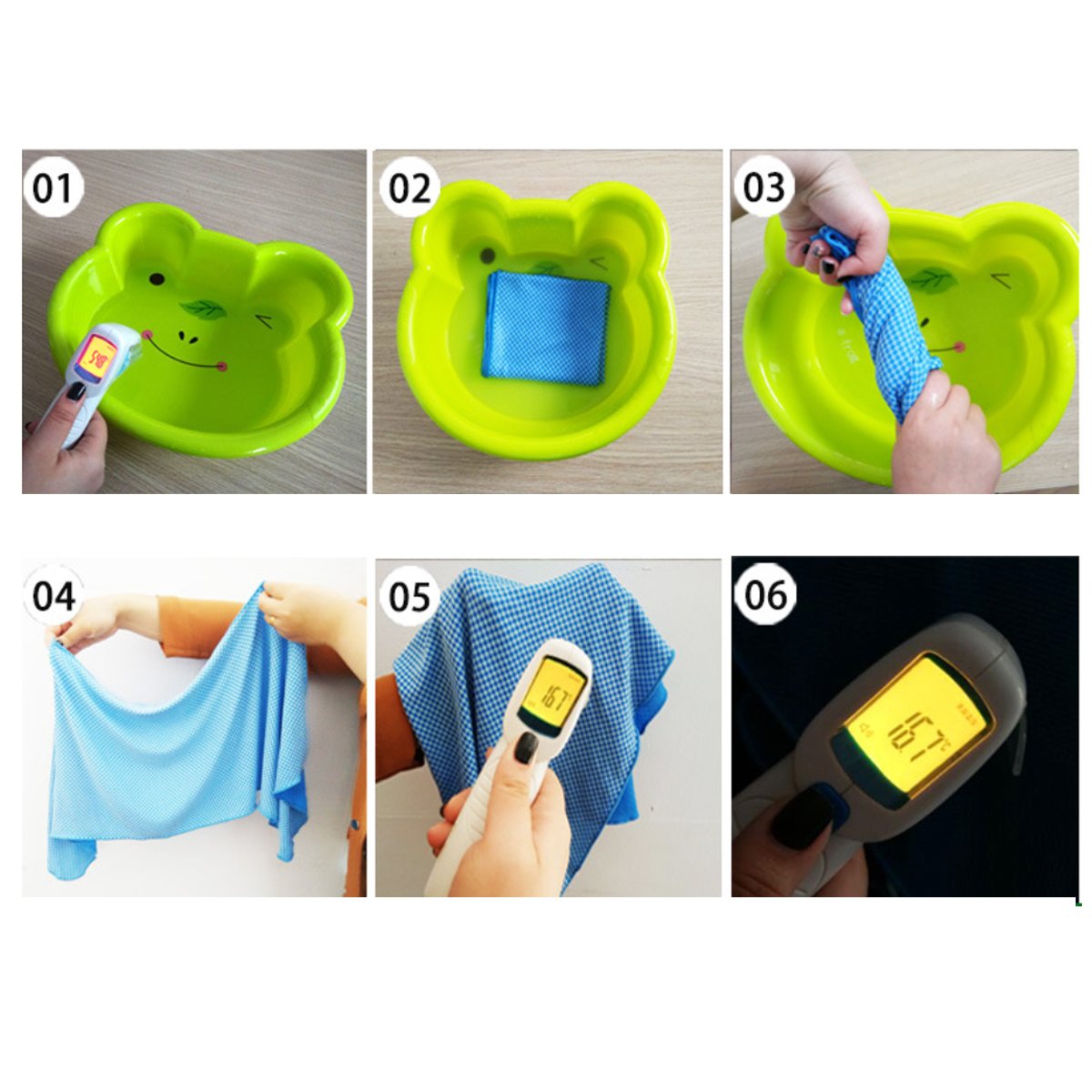 This microfiber mix lightweight towel not only gives an instant super cool effect, but it also stays refreshingly cool even with repeated use. Simply soak it in icy cold water, wring the wet towel and snap it a couple of times. Glide it over your face, neck, and arms, and its cooling properties that are built-in in the Bamboo fabric get activated instantly to give you a super cool feeling whether you are working indoors in the kitchen near the hot stove or playing your favorite sports outdoors in the sun.